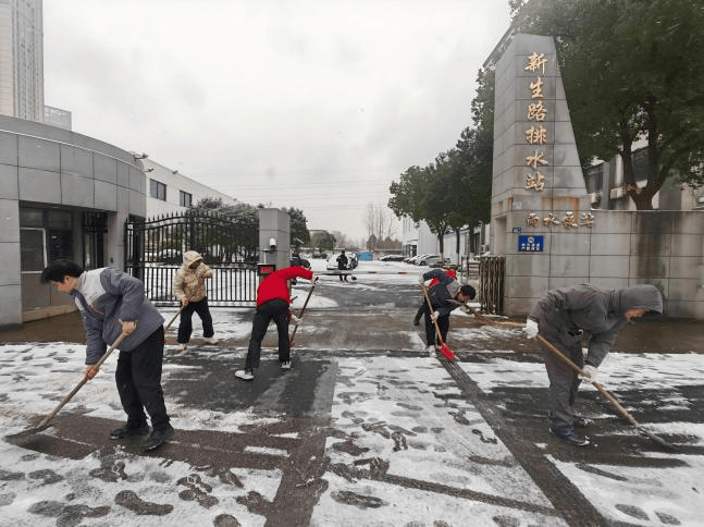 排水站立即启动应急预案,提前在车间出入口、办公楼大厅等关键区域铺设防滑垫,对站区室外的供水管网提前采取保温防护措施,及时组织人员全面清扫通道积雪,并严格落实24小时巡查值班制度,有效确保通行安全与生产秩序。13
